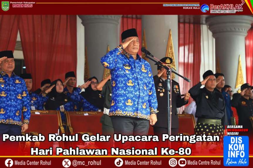 RIAUMERDEKA-Pemerintah Kabupaten (Pemkab) Rokan Hulu (Rohul) gelar upacara peringatan Hari Pahlawan Nasional ke-80 di halaman Kantor Bupati, Senin.