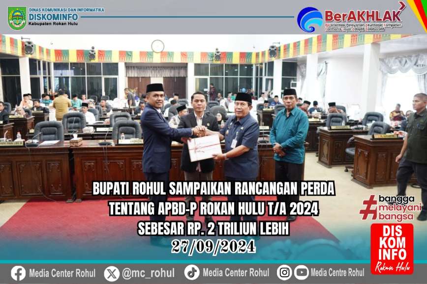 RIAUMERDEKA- Bupati Haji Sukiman menyampaikan Rancangan Peraturan Daerah (RANPERDA) tentang perubahan anggaran pendapatan dan belanja daerah Kabupaten Rokan Hulu Tahun anggaran.