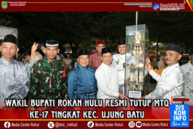 RIAUMERDEKA-Wakil Bupati Kabupaten Rokan Hulu (Rohul), H. Syafaruddin Poti, SH, MM secara resmi menutup Musabaqoh Tilawatil Qur'an (MTQ) Tingkat Kecamatan Ujungbatu ke-17 di halaman Lembaga Kerapatan Adat (LKA) Ujungbatu, Minggu.