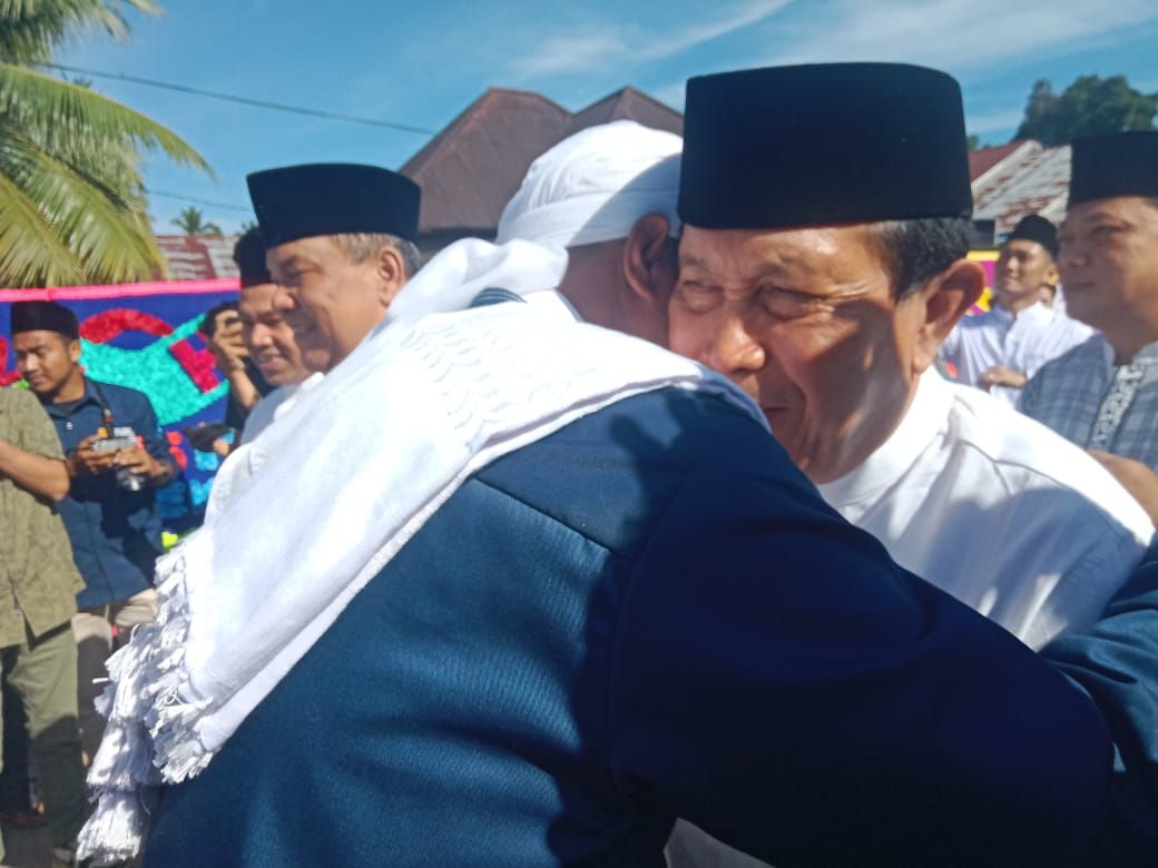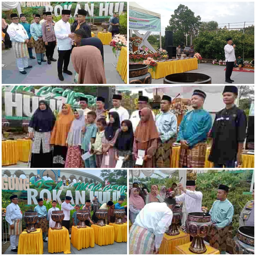 RIAUMERDEKA-Suasana penuh kebersamaan dan kebahagiaan terasa di halaman Masjid Baitannur, Desa Rambah Tengah Barat (RTB), Kecamatan Rambah, Kabupaten Rokan Hulu (Rohul) Jumat.