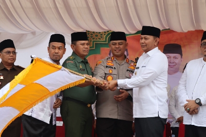 RIAUMERDEKA-Wakil Bupati Rokan Hulu (Rohul) H. Syafaruddin Poti, SH, MM melepas keberangkatan 169 Jamaah Calon Haji (JCH) Kloter 9 asal Rohul dari Masjid Agung Islamic Center (MAIC).
