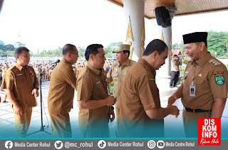 RIAUMERDEKA - Apel perdana Pemerintahan Daerah (Pemda) Rokan Hulu (Rohul) setelah cuti hari Raya Idul Fitri 1445 H dilaksanakan di Kantor Bupati Rohul, Selasa (16/04/2024).