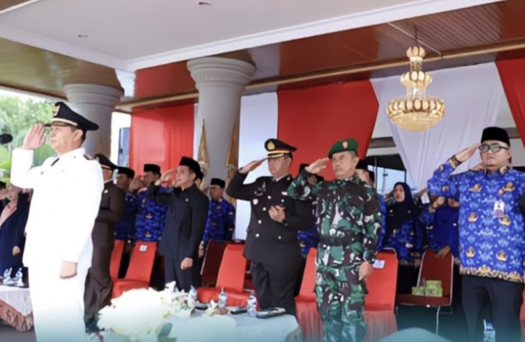RIAUMERDEKA-Upacara peringatan HUT RI ke 80 oleh Pemerintah Kabupaten Rokan Hulu (Rohul) berjalan sukses