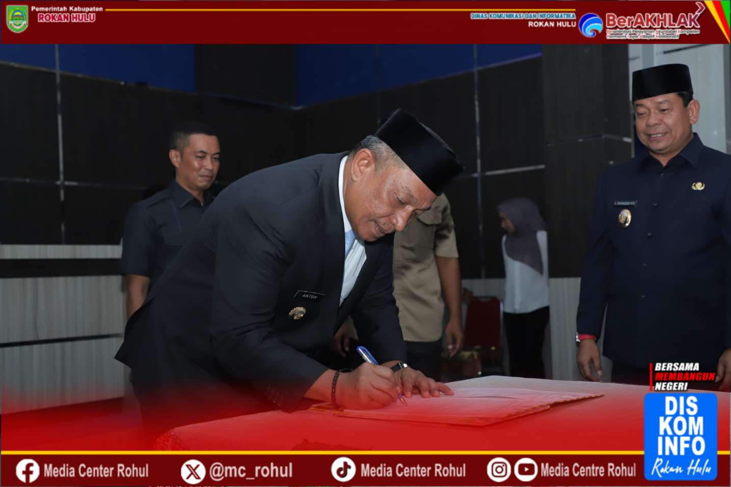 RIAUMERDEKA-Dewan Perwakilan Rakyat Daerah (DPRD) Kabupaten Rokan Hulu (Rohul), menggelar Rapat Paripurna sekaligus serah terima jabatan (Sertijab) Bupati dan Wakil Bupati Rohul.