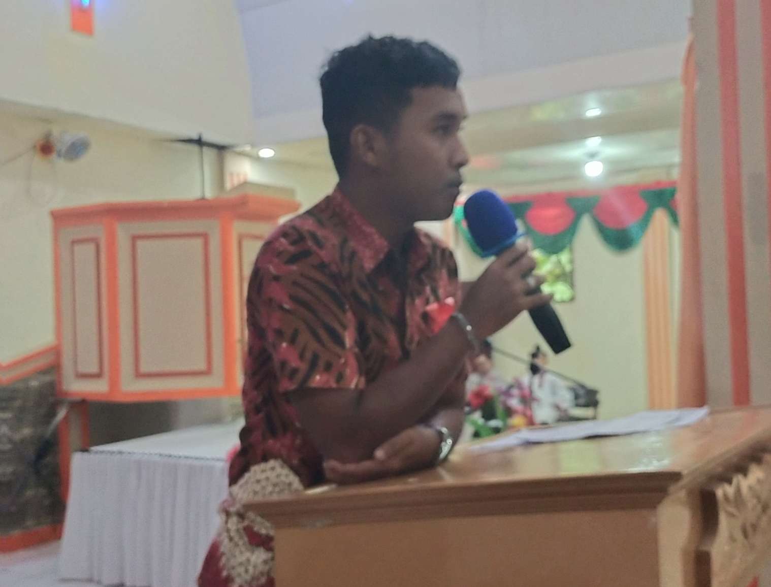 RIAUMERDEKA - Anggota DPRD Kabupaten Rokan Hulu (Rohul), B Marulak Nainggolan, SH sampaikan Apresiasi perayaan Natal yang diselenggarakan oleh Federasi Serikat Pekerja Perkebunan dan Pertanian Sei Kuning Jaya (SPPP-SKJ) Kecamatan Rambah Samo.