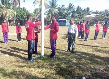 RIAUMERDEKA-Sersan Mayor (Serma) Muhar latih Pasukan Pengibar Bendera (Paskibra) di lapangan Jasa Tama, Desa Pendalian Kecamatan Pendalian IV Koto Kabupaten Rokan Hulu (Rohul), Selasa.