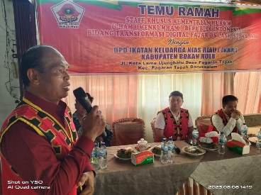 RIAUMERDEKA-Staff khusus Menteri Hukum dan Hak Asasi Manusia (Menkumham) bangga dapat hadir ditengah-tengah Warga suku Nias di Kabupaten Rokan Hulu (Rohul), khususnya di acara ramah tamah yang diselenggarakan di Sekretariat DPD IKNR.