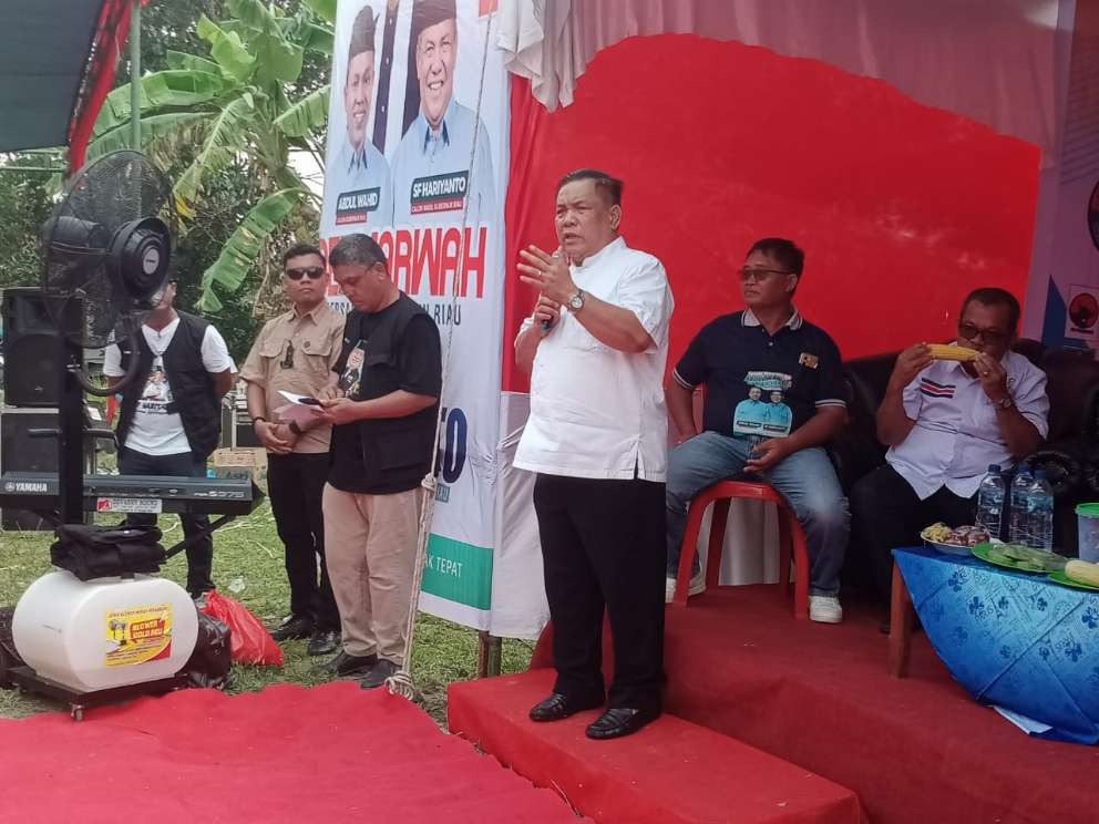 RIAUMERDEKA-Wakil Ketua harian team Bermarwah Irwan Nasir pemenangan Calon Gubernur Wakil Gubernur Provinsi Riau Abdul Wahid dan SF Hariyanto menyampaikan program atau Visi Misi Pasangan Calon Gubernur Riau Nomor Urut 1.