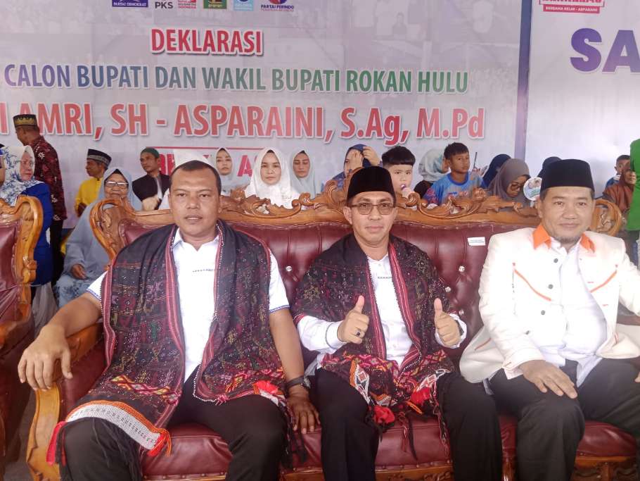 RIAUMERDEKA-Pasangan Calon (Paslon) Bupati Rokan Hulu (Rohul) Kelmi Amrin, SH dan Asparaini, S.Ag, M.Pd mengadakan Deklarasi di Taman Kota, Pasir Pengaraian Rabu,.