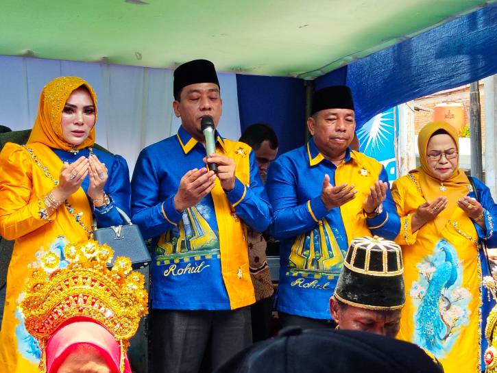 RIAUMERDEKA-Sebelum berangkat mendaftar ke Komisi Pemilihan Umum (KPU) Rokan Hulu (Rohul) Pasangan Calon (Paslon) Bupati dan Wakil Bupati Rohul H Erizal, ST - H.T Rusli, S.Sos diawali dengan berdoa..