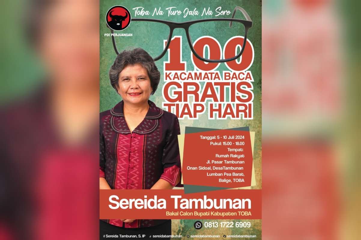 RIAUMERDEKA-Bakal Calon (Balon) Bupati Kabupaten Toba, Sereida Tambunan,S.IP gencar membagikan Seratus Kacamata Baca Gratis setiap hari kepada Masyarakat.