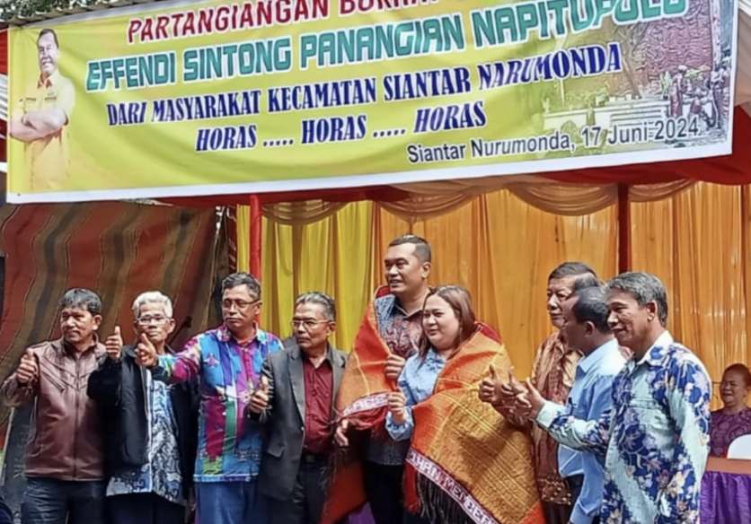 RIAUMERDEKA-Ditengah Gerimis Rintik-rintik Ribuan Masyarakat Siantar Narumonda mendoakan Bakal Calon (Balon) Bupati Toba Effendi Napitupulu