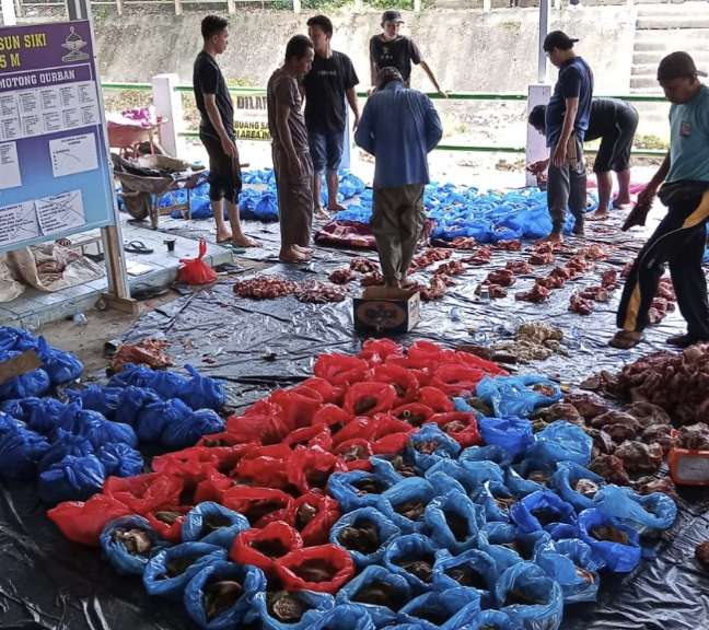 RIAUMERDEKA-Sebanyak 44 Ekor daging Qurban disalurkan kepada Warga Desa Lubuk Bendahara Kecamatan Rokan IV Koto Kabupaten Rokan Hulu (Rohul) pada peringatan Idul Adha 1446.
