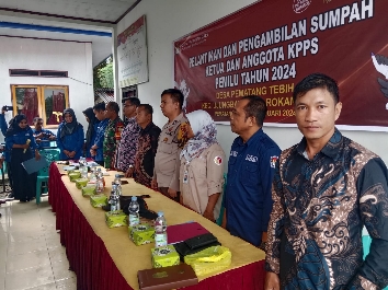 RIAUMERDEKA-196 Anggota Kelompok Penyelenggara Pemungutan Suara (KPPS) Desa Pematang Tebih Kecamatan Ujungbatu Kabupaten Rokan Hulu (Rohul), Resmi dilantik di aula Desa Desa,.